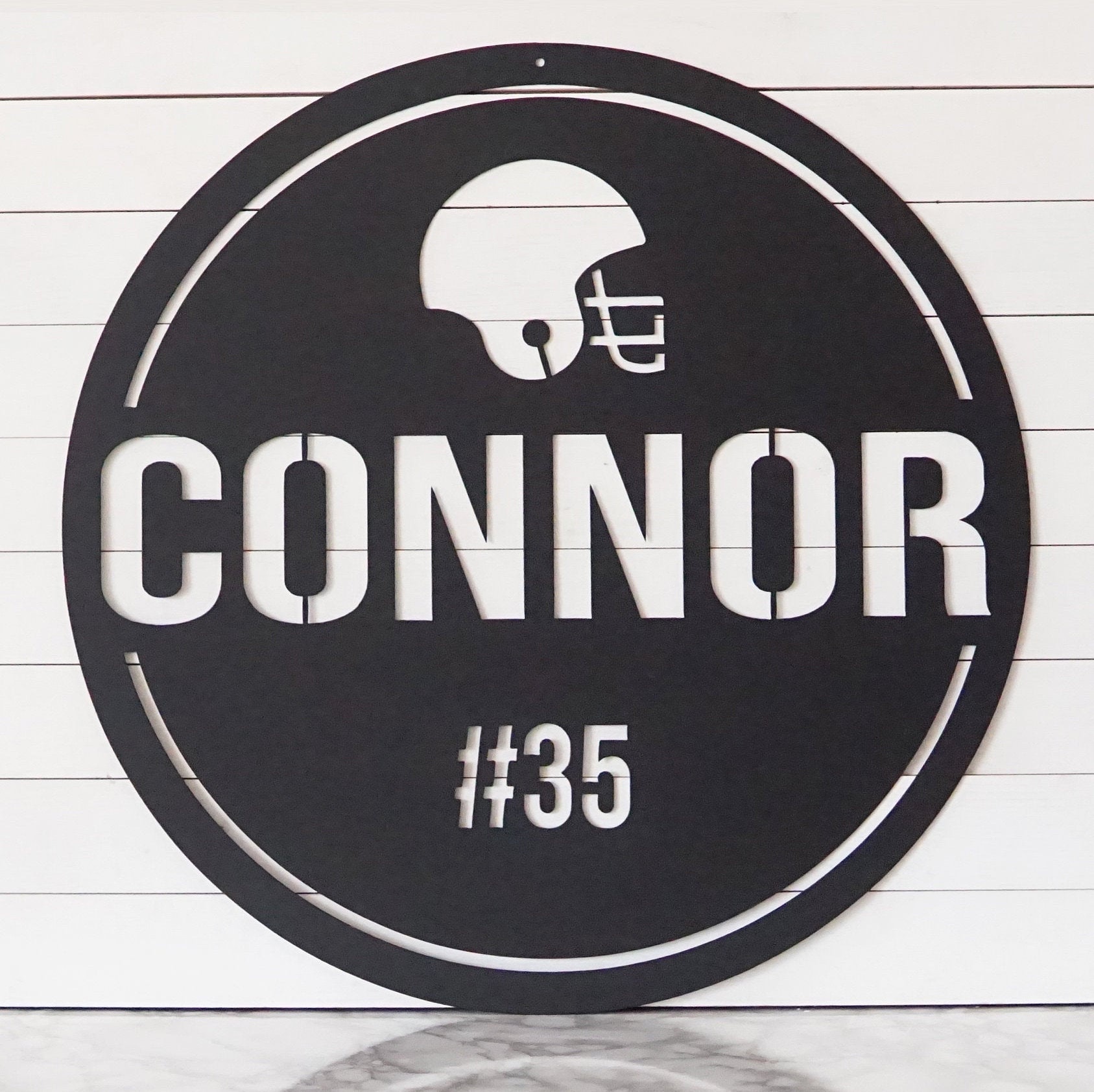 Add a personal touch to any space with this Custom Football Sign! Whether it's to celebrate Father's day, a birthday or anniversary, this sign makes for a great personalized gift! Metal artwork gives a modern yet rustic feel, making a great addition to any space.