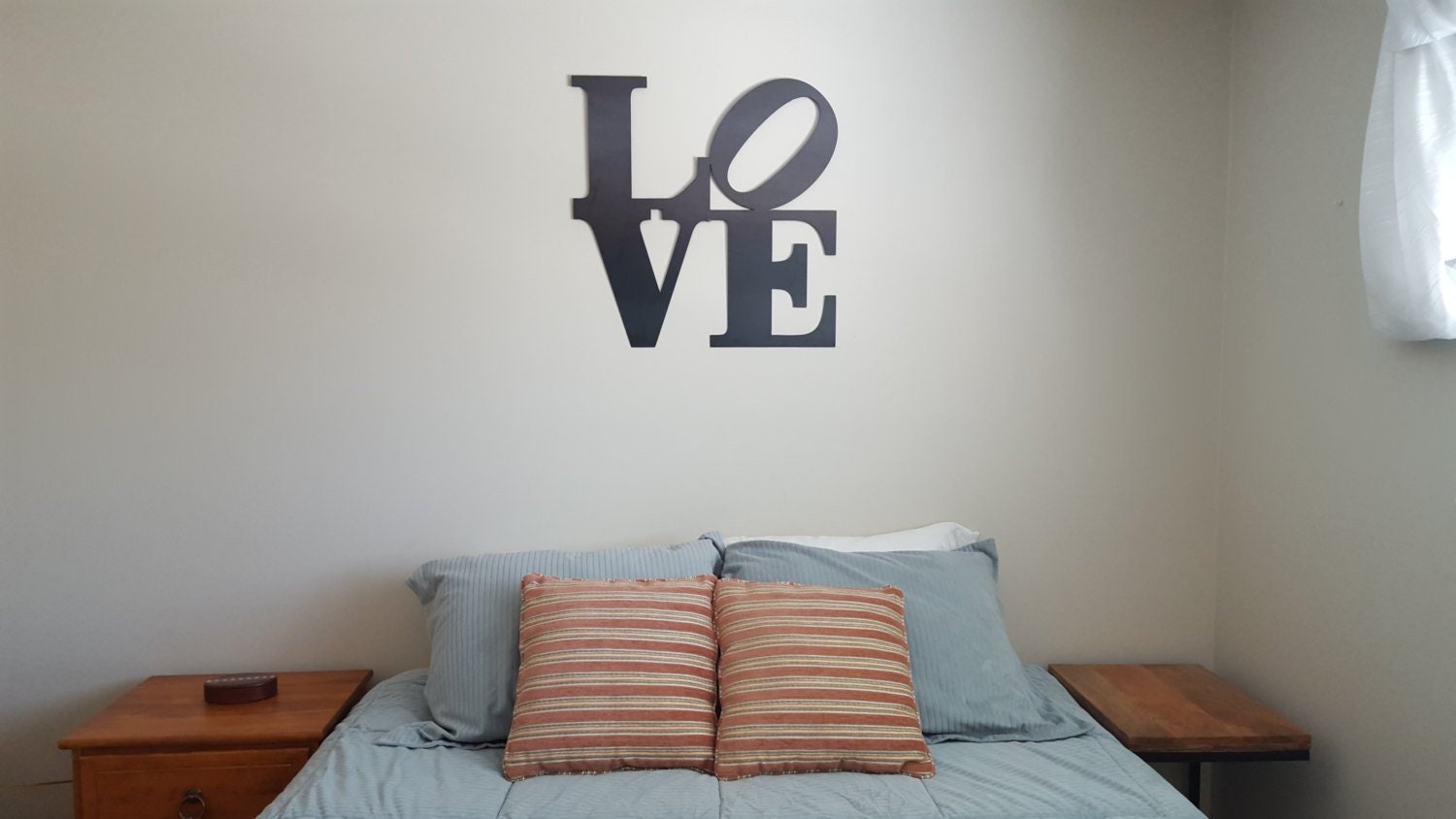 This Love Sign is sure to add character to any space in your home! Metal artwork gives a modern yet rustic feel, making a great addition to any space.